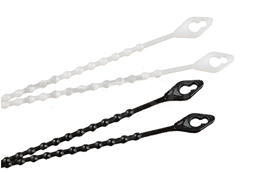 Dây rút cáp dạng hạt (Beaded cable ties:) Thiết kế kết cườm cho phép chúng có thể tháo rời và tái sử dụng