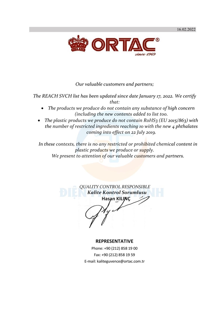 • Hãng sản xuất : Ortac / EU